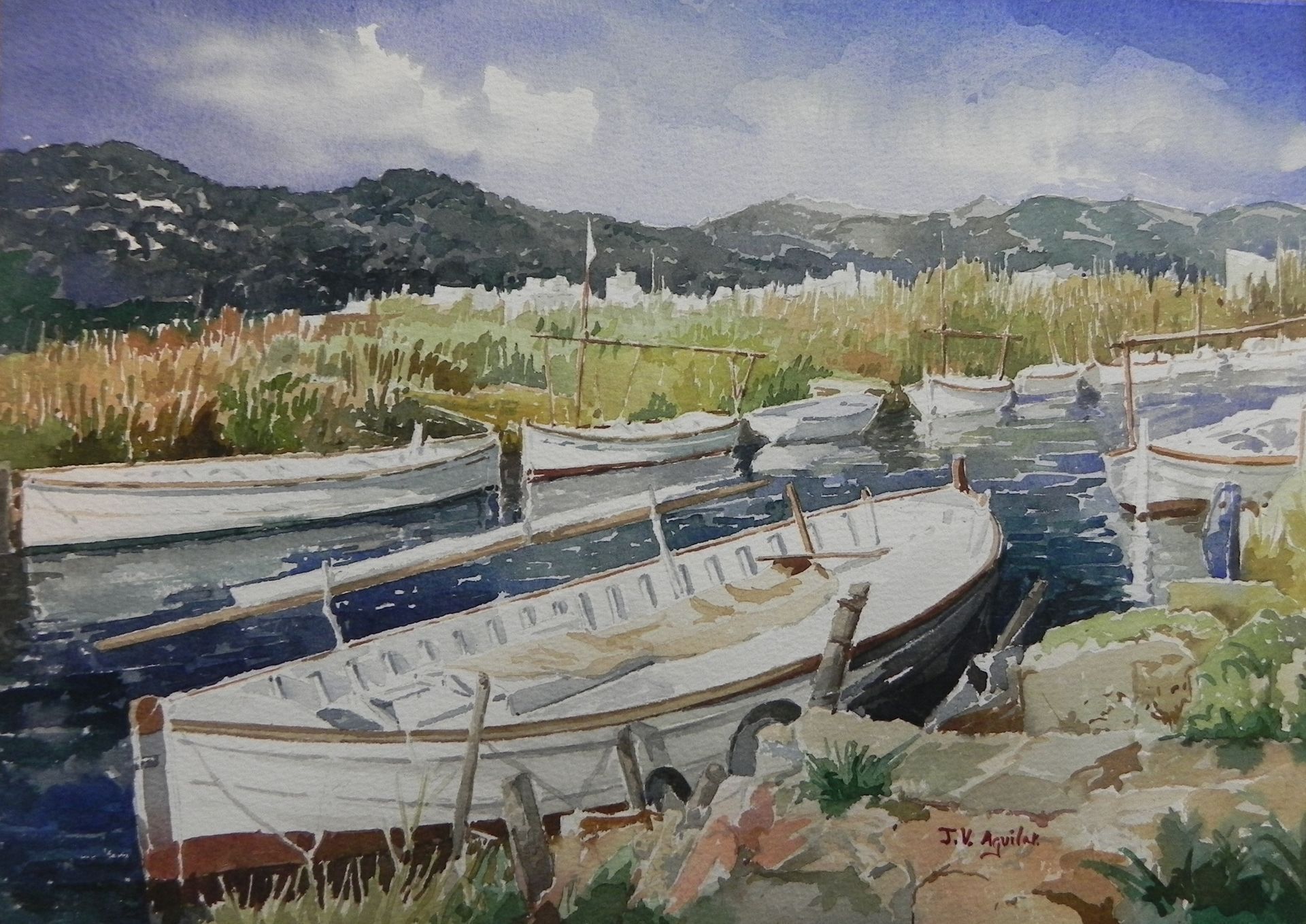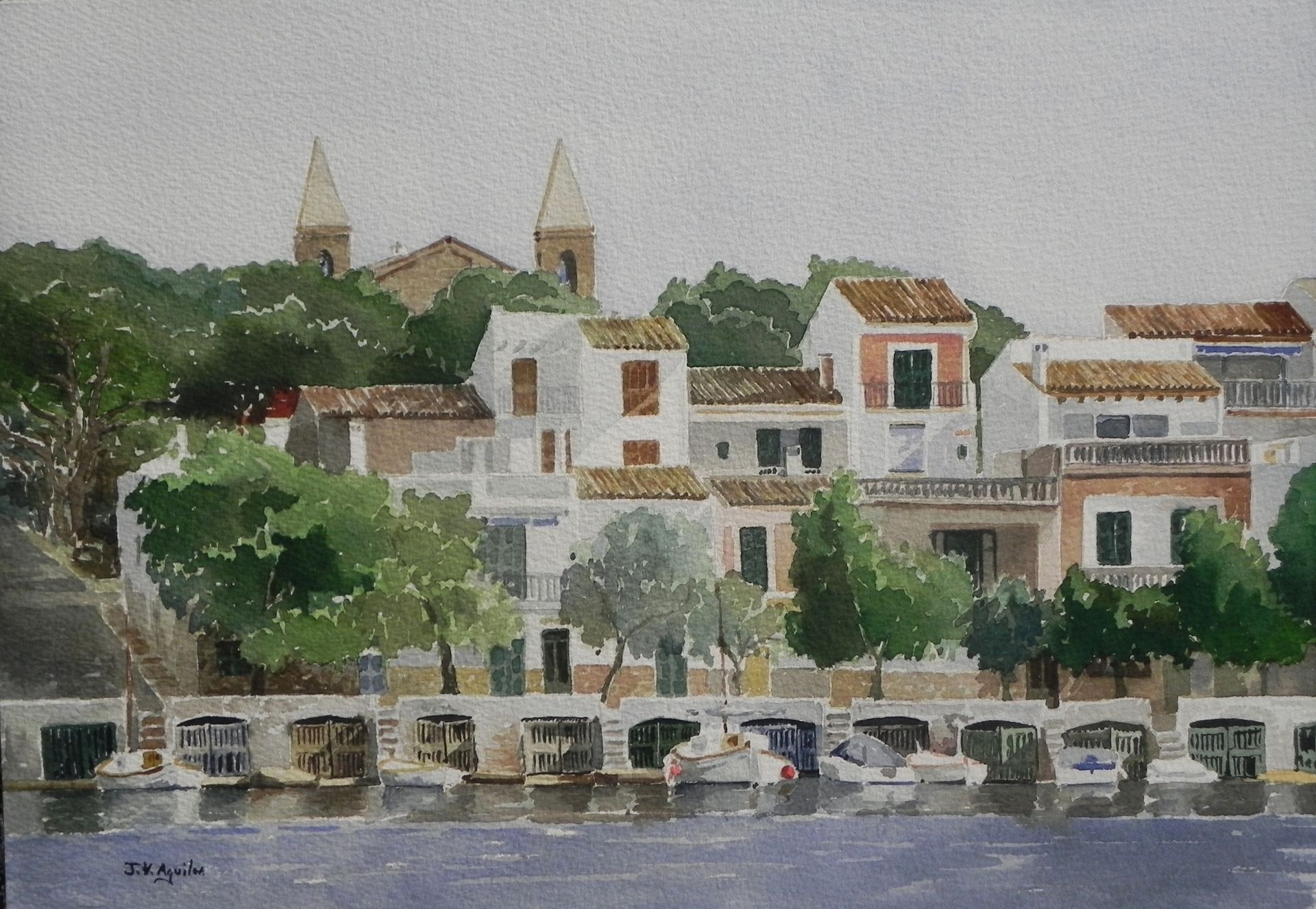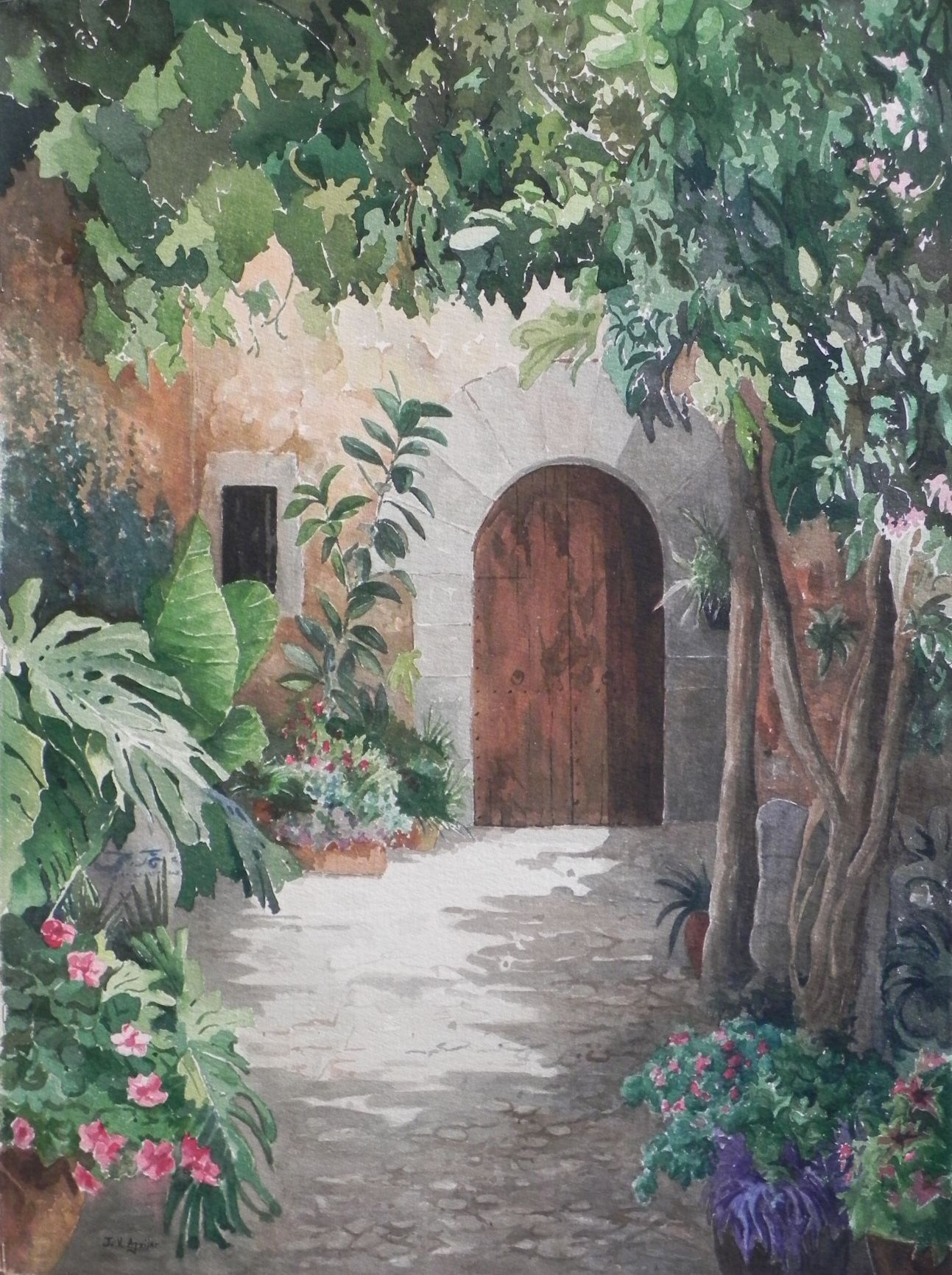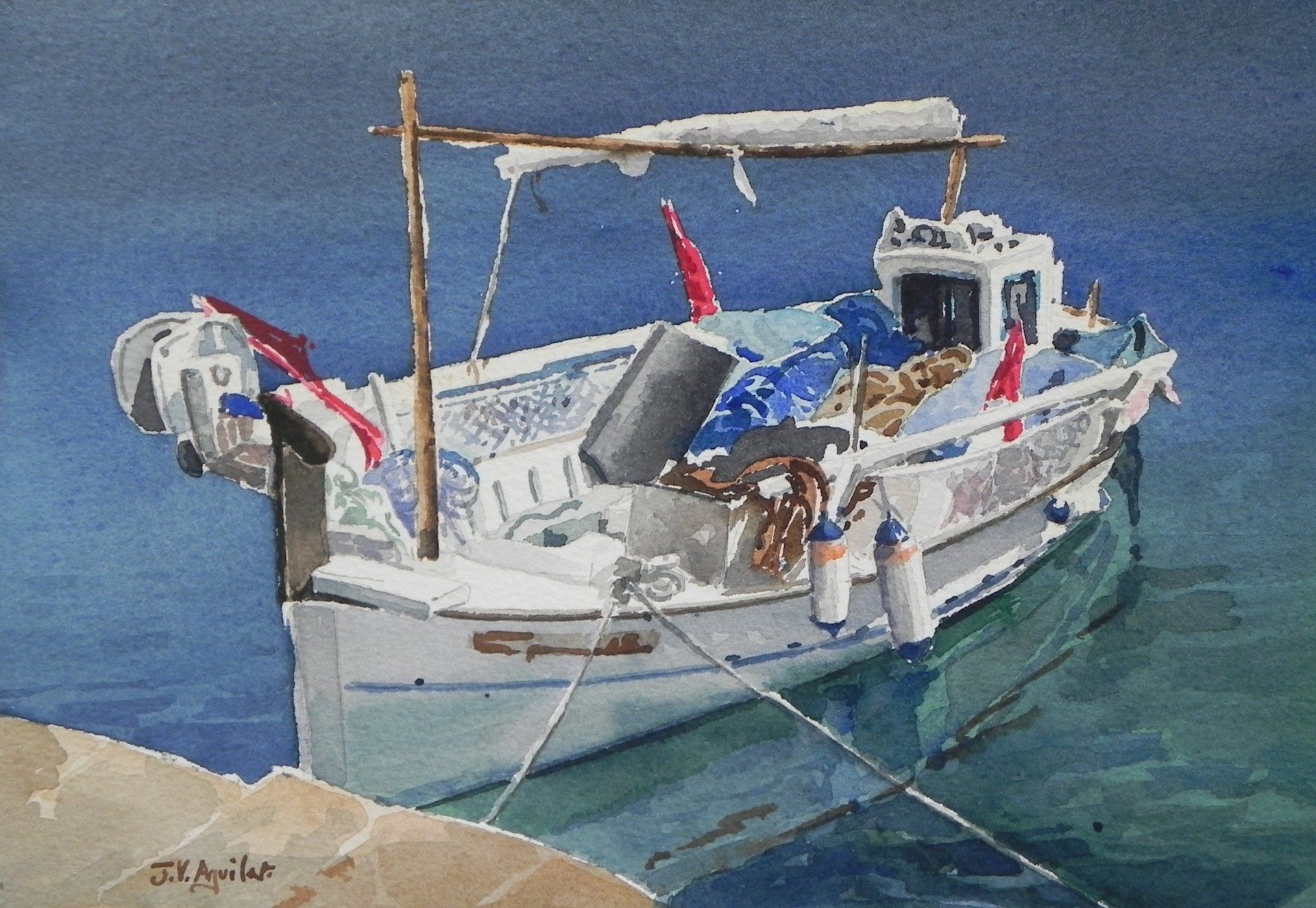.Juan V. Aguilar Caballero cultiva con indudable maestría la acuarela. Sus aguadas, cuidadas y atentas al detalle, descriptivas, responden a una realización pausada y serena. Le place captar rincones de jardines de gran complejidad descriptiva, espacios llenos de luz balear, atrayentes y fiel reflejo de un dominio no frecuente de la siempre difícil técnica de la acuarela.
